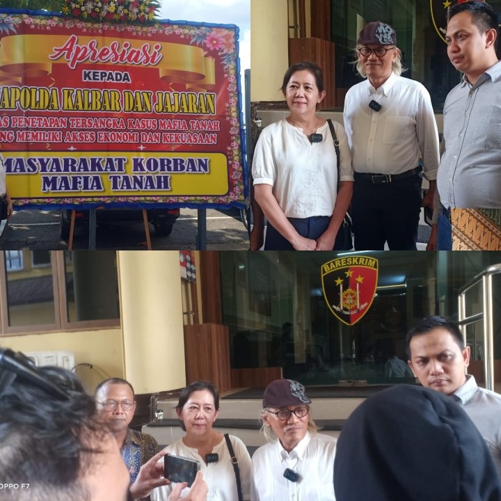 Ia juga menjelaskan bahwa pemasangan karangan bunga di Polda Kalbar merupakan bentuk apresiasi kepada Kapolda dan jajarannya. “Tersangka dari pihak BPN memang terduga, namun mafia tanah tidak bekerja sendiri. Ada kemungkinan akan ada tersangka lain dalam kasus ini,” pungkas Lili Santi.
