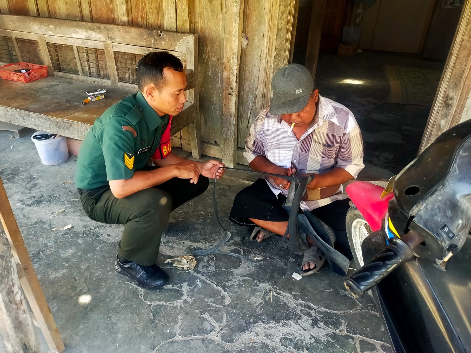CAHAYANEWSKEPRI.COM – Hal tersebut ditegaskan Serma Jumarno Babinsa Ds.Ngebung Koramil 18/Kalijambe Kodim 0725/Sragen saat melaksanakan Komsos dengan tukang tambal ban sepeda motor Bapak Sukirman warga Dk.Ngebung RT.04 Desa Ngebung, Kecamatan Kalijambe, Kamis (09/11/2023)