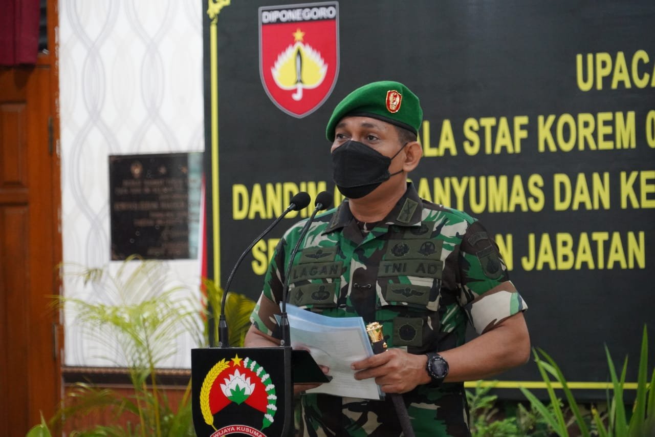 Komandan Korem 071/Wijayakusuma, Kolonel Inf Dwi Lagan Safrudin, S.I.P., dalam amanatnya mengatakan, pergantian pejabat dalam suatu organisasi merupakan hal wajar serta dapat terjadi disetiap saat.