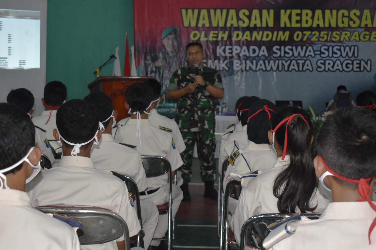 Dihadapan ratusan siswa siswi SMK Binawiyata Sragen, Dandim mengatakan bahwa siswa harus belajar dari sejarah bangsa Indonesia yang dulu dijajah oleh Belanda selama 350 tahun.