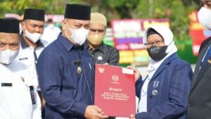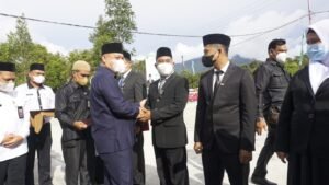 Daik Lingga – Bupati Lingga, Muhammad Nizar mejadi pembina upacara pada Peringatan Hari Amal Bhakti (HAB) ke-76 Kementerian Agama RI, tingkat Kabupaten Lingga yang berlangsung dihalaman kantor Kemenag, Senin (03/01/2022).