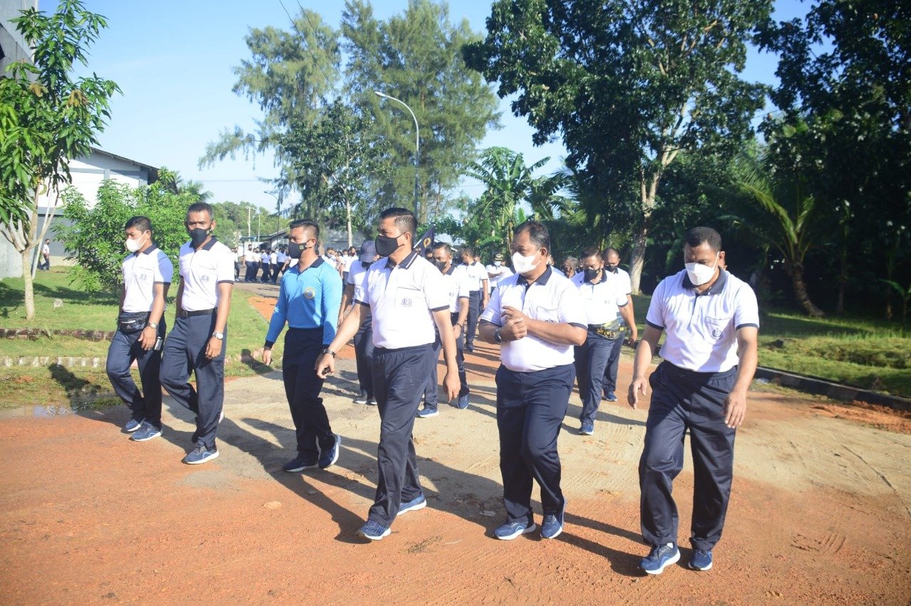 Lantamal IV (Tanjung Uban) – Jaga kebugaran tubuh dimasa pandemi Covid-19, segenap Prajurit dan PNS Fasilitas Pemeliharaan dan Perbaikan Mentigi (Fasharkan Mentigi) dan Satuan Patroli Lantamal IV (Satrol Lantamal IV) melaksanakan olahraga bersama yang berlangsung di lapangan apel Fasharkan Mentigi Komplek Koarmada I Tanjung Uban Bintan Kepulauan Riau, Selasa pagi (16/11/2021).