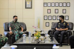 Lantamal IV (Tanjungpinang) – Komandan Pangkalan Utama TNI Angkatan Laut IV Tanjung pinang (Danlantama IV Tanjung pinang) Laksamana Pertama TNI Dwika Tjahja Setiawan, S.H., M.H., terima kunjungan kerja (kunker) Kepala Bea dan Cukai Batam Ambang Priyonggo di ruang VIP Mako Lantamal IV Jl. Yos Sudarso No.1 Batu Hitam Tanjung pinang Kepulauan Riau, Rabu siang (08/12/2021).