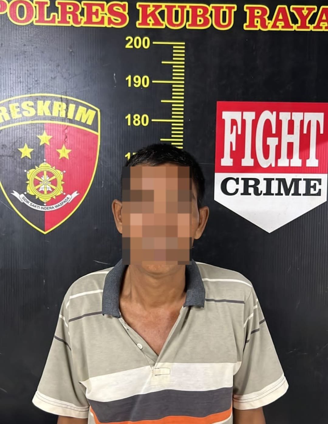 Kapolres Kubu Raya AKBP Arief Hidayat, S.H., S.I.K., melalui Kasubsi Penmas Polres Kubu Raya, Aipda Ade menerangkan, Pria berinisial RS (55) warga Desa Kuala Dua Kecamatan Sungai Raya Kabupaten Kubu Raya ditangkap pihak kepolisian di sebuah rumah di Jalan Abdurrahman Wahid, Desa Kuala Dua, Kecamatan Sungai Raya.