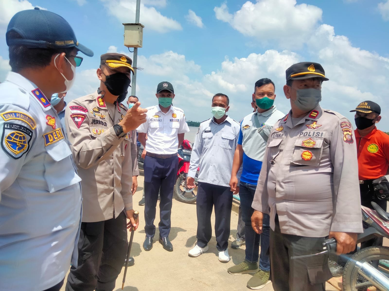 CAHAYANEWSKEPRI.COM – Hadir dalam kunjungan kepospam Terpadu pelabuhan Rasau jaya Waka Polres Kubu Raya, KOMPOL Sandhy W.G.Suana, S.P.,S.IK., Kabag SDM, Kompol Brdanata Sembiring, S.H.,M.H, Kasat Reskrim, AKP Jatmiko, S.H, MH, Kasat Intel, AKP Srinanto, SAP, Kasiwas, IPTU Wagiman, Kasat Lantas, IPTU Junaedi, Kapolsek Rasau Jaya, IPTU Setyo Pramulyanto, S.H, Kapospam, IPTU Elisa Panjaitan, Kepala UPT pelabuhan Rasau Jaya, Dery S.Pd, Kepala UPT perairan pedalaman sui raya, Tri Wicaksono Adi S.STP, M.A.P.