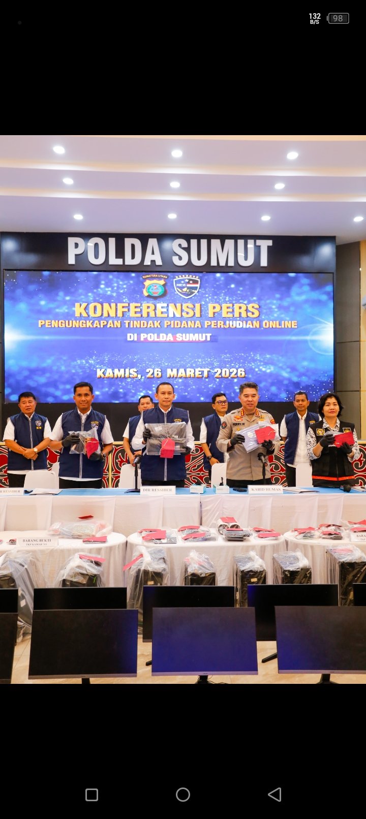 Pengungkapan itu disampaikan oleh Dirresiber Polda Sumut Kombes Pol Dr. Bayu Wicaksono dalam konferensi pers yang dibuka oleh Kabid Humas Polda Sumut Kombes Pol Ferry Walintukan di Aula Tribrata Polda Sumut, Kamis (26/3/2026).