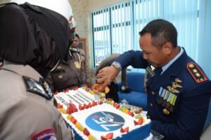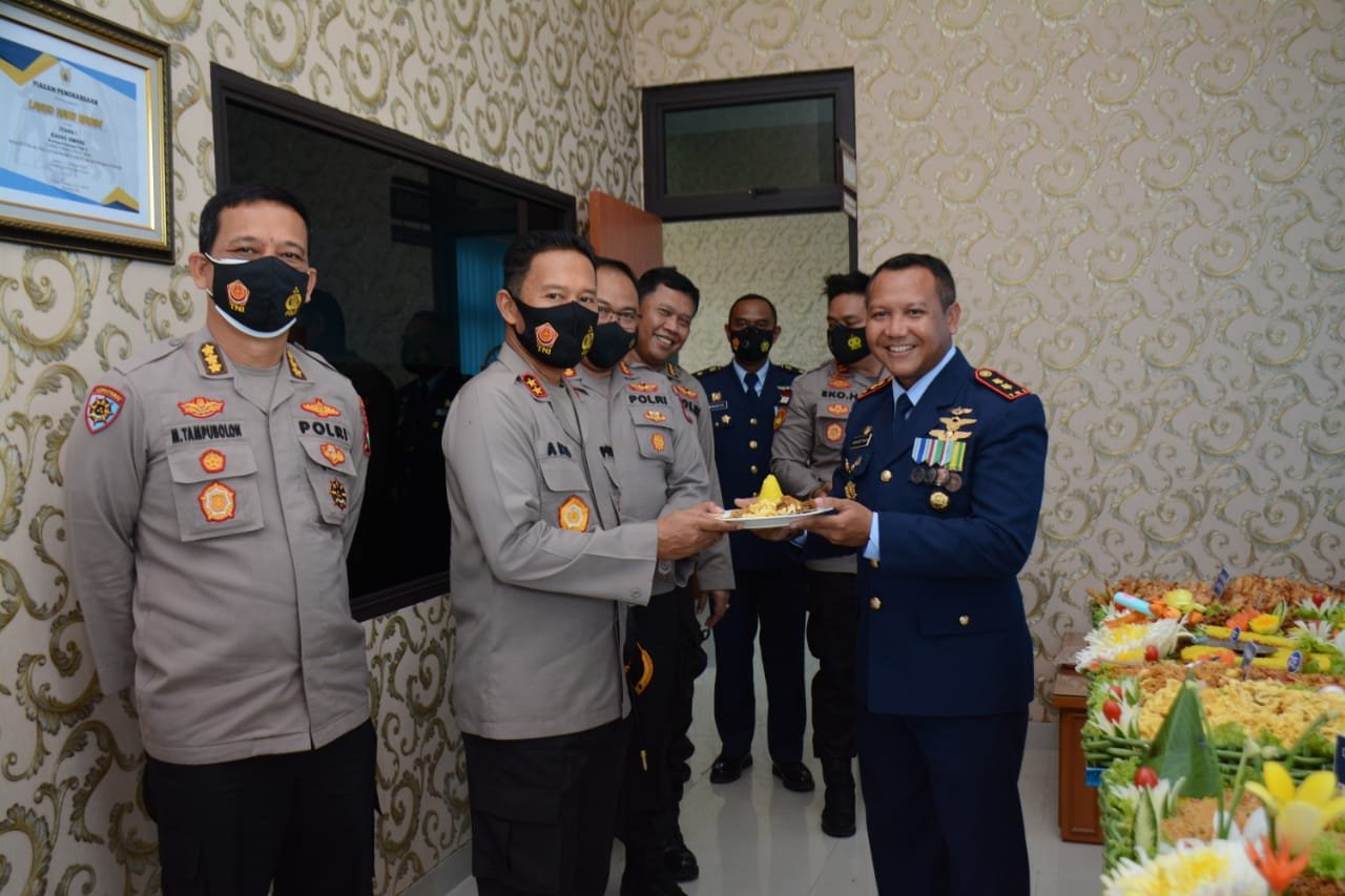 CAHAYANEWSKEPRI.COM – Kapolda Kepri Irjen Pol Dr. Aris Budiman, M.Si beserta pejabat Utama Polda Kepri dan Kapolresta Barelang datang langsung ke Mako Lanud Hang Nadim Kota Batam dengan membawa Kue ulang tahun dan secara langsung mengucapkan Selamat HUT TNI AU ke-75 kepada Komandan Lanud Hang Nadim Letkol Pnb Iwan Setiawan, S.A.P.
