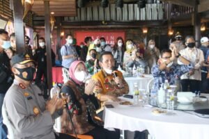 Batam – Kapolda Kepri Irjen Pol. Dr. Aris Budiman M.Si., dampingi Menteri Pariwisata dan Ekonomi Kreatif RI dalam peninjauan vaksinasi covid – 19 bagi pelaku pariwisata di Kelong Batam View Beach & Resort – Nongsa Batam, Kegiatan tersebut dilaksanakan pada Sabtu (20/3/2021).