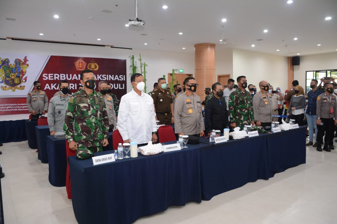 Kabid Humas Polda Kepri Kombes Pol Harry Goldenhardt S.,S.I.K.,M.Si juga menambahkan bahwa dalam Kegiatan Serbuan Vaksinasi Akabri 1999 Peduli ini terdiri dari beberapa kegiatan, antara lain Vaksinasi, Baksos serta pembagian Sembako di beberapa tempat wilayah kota Batam. Kegiatan ini sudah kita laksanakan semenjak tanggal 1 Oktober dan acara puncaknya pada hari ini Rabu, tanggal 20 Oktober 2021 dilaksanakan secara Nasional melalui Video Converence yang dihadiri oleh Kapolri Jenderal Polisi Drs. Listyo Sigit Prabowo,M.Si dan Panglima TNI Marsekal TNI Hadi Tjahjanto.