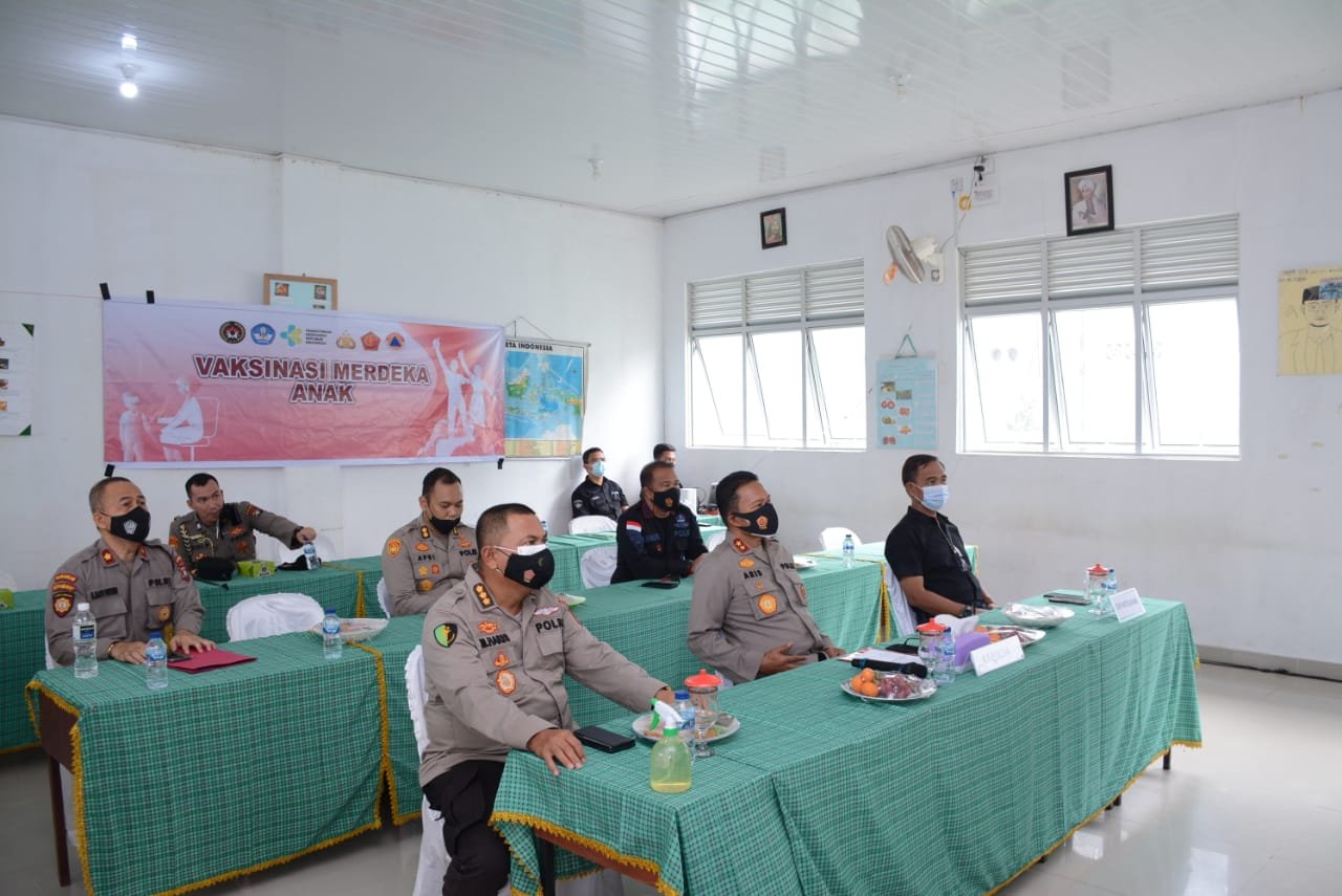 Batam – Kapolda Kepri Irjen Pol Dr. Aris Budiman, M.Si., didampingi Pejabat Utama Polda Kepri hadiri pelaksanaan vaksinasi massal serentak Se-Indonesia dalam rangka percepatan vaksinasi merdeka anak secara virtual di SD Al Barkah Plus Kecamatan Sagulung, Kota Batam. Jumat (7/1/22).