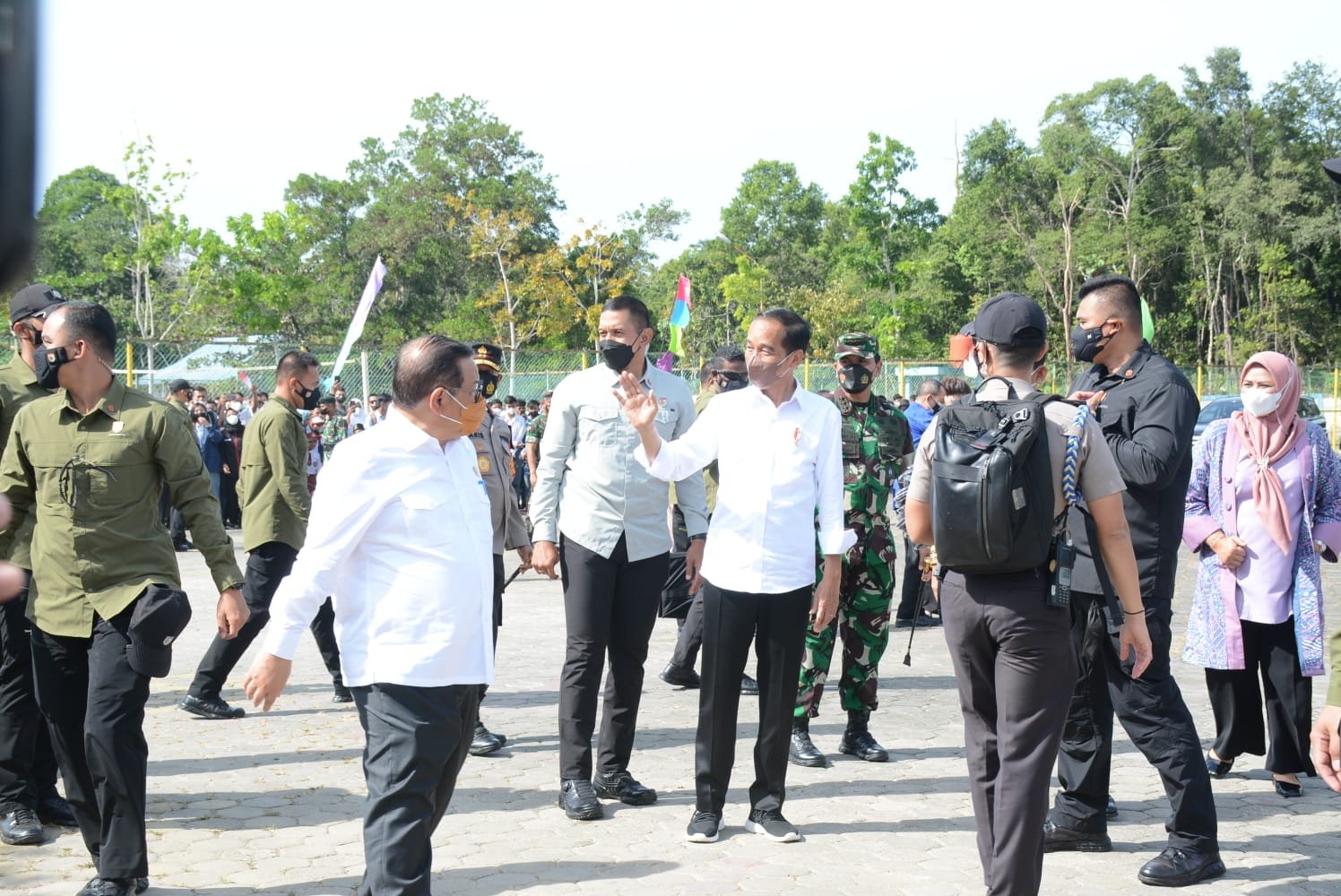 Turut mendampingi Presiden RI dalam peninjauan kegiatan vaksinasi tersebut antara lain Sekretaris Kabinet Dr. Ir. Pramono Anung Wibowo, M.M., Gubernur Kepulauan Riau Ansar Ahmad, S.E., M.M., Pangkogabwilhan I Laksamana Madya TNI Muhammad Ali, S.E., M.M., S.Tr.Opsla., Pangdam I/BB Mayjen TNI Hassanudin, S.I.P., M.M., Kapolda Kepri Irjen Pol Dr. Aris Budiman, M.Si., Danrem 033/WP Brigjen TNI Jimmy Ramoz Manalu, S.Hub,. Int., Danlantamal IV Laksma TNI Dwika, Danlanud Raja Haji Fisabilillah Kolonel Pnb Agustinus Donnie, Plt. Bupati Bintan Roby Kurniawan dan OPD Prov. Kepri dan Kab. Bintan. Tutup Kabid Humas Polda Kepri Kombes Pol Harry Goldenhardt S., S.IK., M.Si.