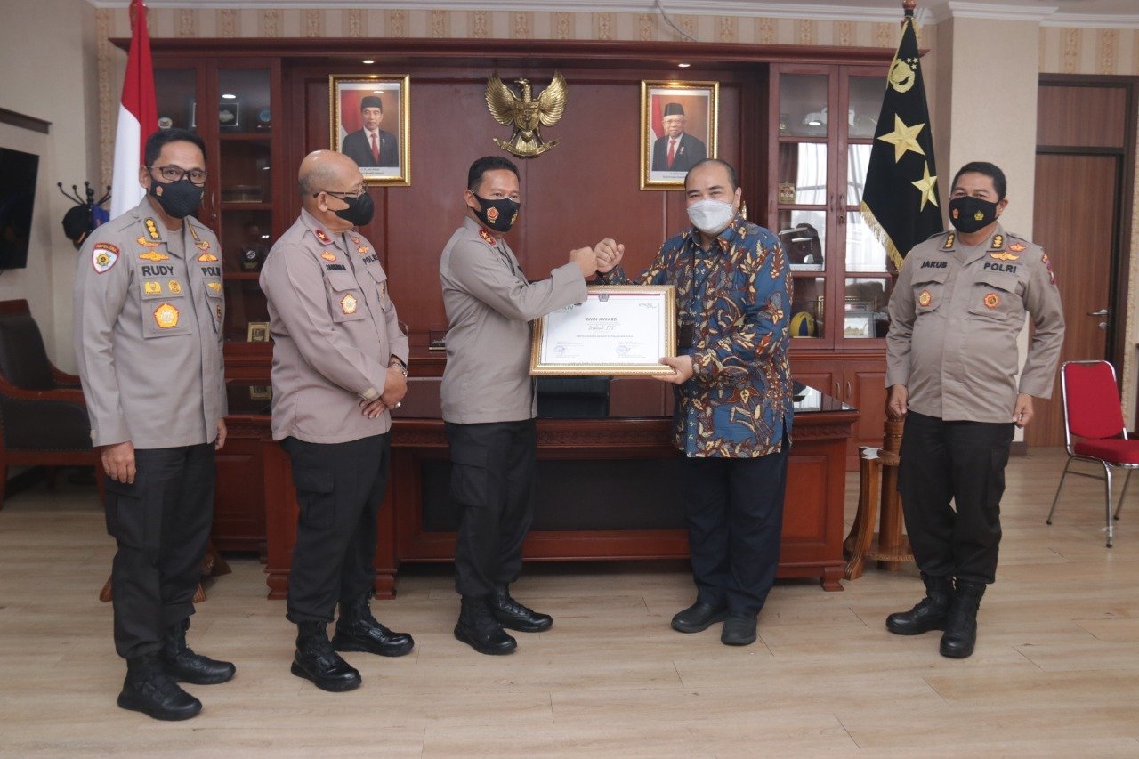 “Kegiatan dilanjutkan dengan penyerahan piagam penghargaan BMN Awards Terbaik ke-3 kategori Pengelolaan BMN kelompok koordinator wilayah dari Dirjen Kekayaan Kemenkeu RI Kanwil Riau, Sumbar dan Kepri”. Tutup Kabid Humas Polda Kepri Kombes Pol Harry Goldenhardt S., S.IK., M.Si.