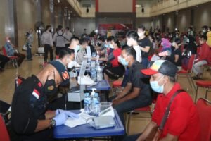 Batam – Dalam rangka percepatan vaksinasi di akhir tahun agar segera mencapai kekebalan Komunal dalam menghadapi Pandemi Covid-19, Kapolda Kepri Irjen Pol Dr. Aris Budiman M.Si meninjau langsung pelaksanaan Vaksinasi serentak di Vihara Duta Maytreya – Batam Kota. Hadir dalam kegiatan tersebut Pejabat Utama Polda Kepri, Kapolresta Barelang dan Kepala Rumah Sakit Bhayangkara Batam. Rabu (27/11/2021).