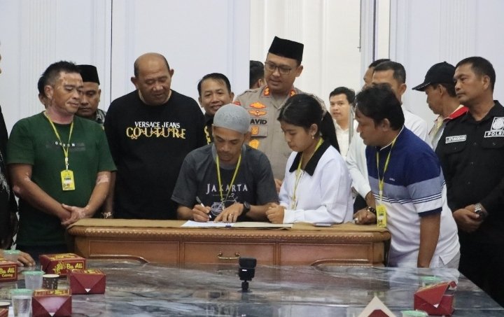 Setelah melalui proses musyawarah, kedua belah pihak akhirnya sepakat untuk berdamai dan menandatangani berita acara kesepakatan bersama.