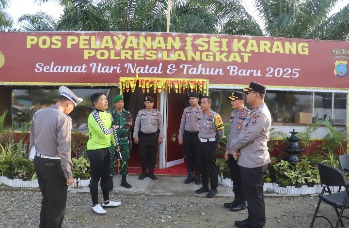 LANGKAT – Kepala Kepolisian Resor Langkat AKBP David Triyo Prasojo, SH, SIK, MSi, mendampingi Wakapolda Sumatra Utara Brigjen Pol Rony Samtana S.I.K M.T.C.P., bersama rombongan Pejabat utama (PJU) Polres Langkat, mengecek beberapa Pos Operasi Lilin Toba 2024 Wilayah Kabupaten Langkat, Kamis (26/12/2024).