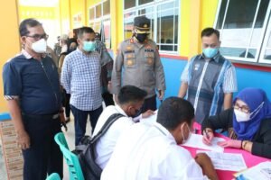 Lingga, Kepri – Kapolres Lingga bersama Bupati Pelaksanaan Vaksinasi Covid-19 Kepada Anak Usia 12 Tahun s/d 17 Tahun yang bertempat di SMK Negeri 1 Singkep, Kecamatan Singkep, Kabupaten Lingga, pada Kamis 15/07/2021.