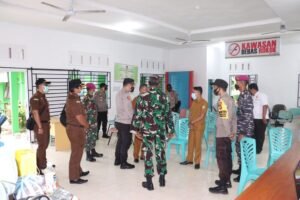 Dabo Singkep – Kapolres Lingga AKBP Arief Robby Rachman SH,SIK,MSi bersama Danpuslatpurmar 9 Dabo Singkep MAYOR MAR Adid Kurniawan Wicaksono, M.Tr.Opsla, Sekda Kabupaten Lingga Syamsudi, S.Pd, Kadinkes PPKB Kabupaten Lingga Abdul Mulkan Azima melakukan Peninjauan kegiatan vaksinasi oleh TNI/Polri bersama Pemkab kabupaten Lingga di Kecamatan Singkep Kabupaten Lingga, Senin (23/8/2021).