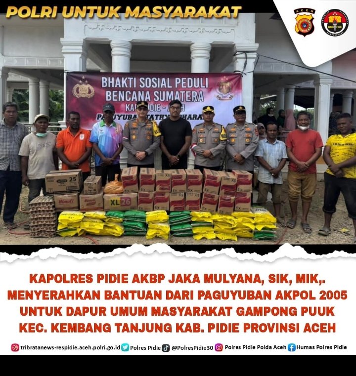 “Terima kasih kepada Kapolres Pidie dan seluruh Alumni Akpol 2005. Bantuan ini langsung kami gunakan untuk masak di dapur umum. Kami merasa sangat diperhatikan,” ucapnya.