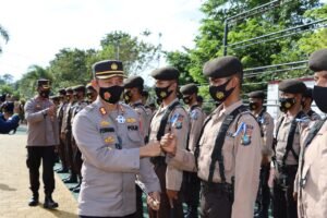 Tanjungpinang – Kapolres Tanjung pinang AKBP Fernando, SH, SIK memimpin apel penutupan latja dan penyerahan siswa diktuk Bintara Polri Ta. 2021 SPN Polda Kepri di Polres Tanjung pinang yang telah selesai melaksanakan Latihan Kerja (Latja) di Polres Tanjung pinang yang dilaksanakan selama kurang lebih (10) sepuluh hari. Kamis (09/12/2021).
