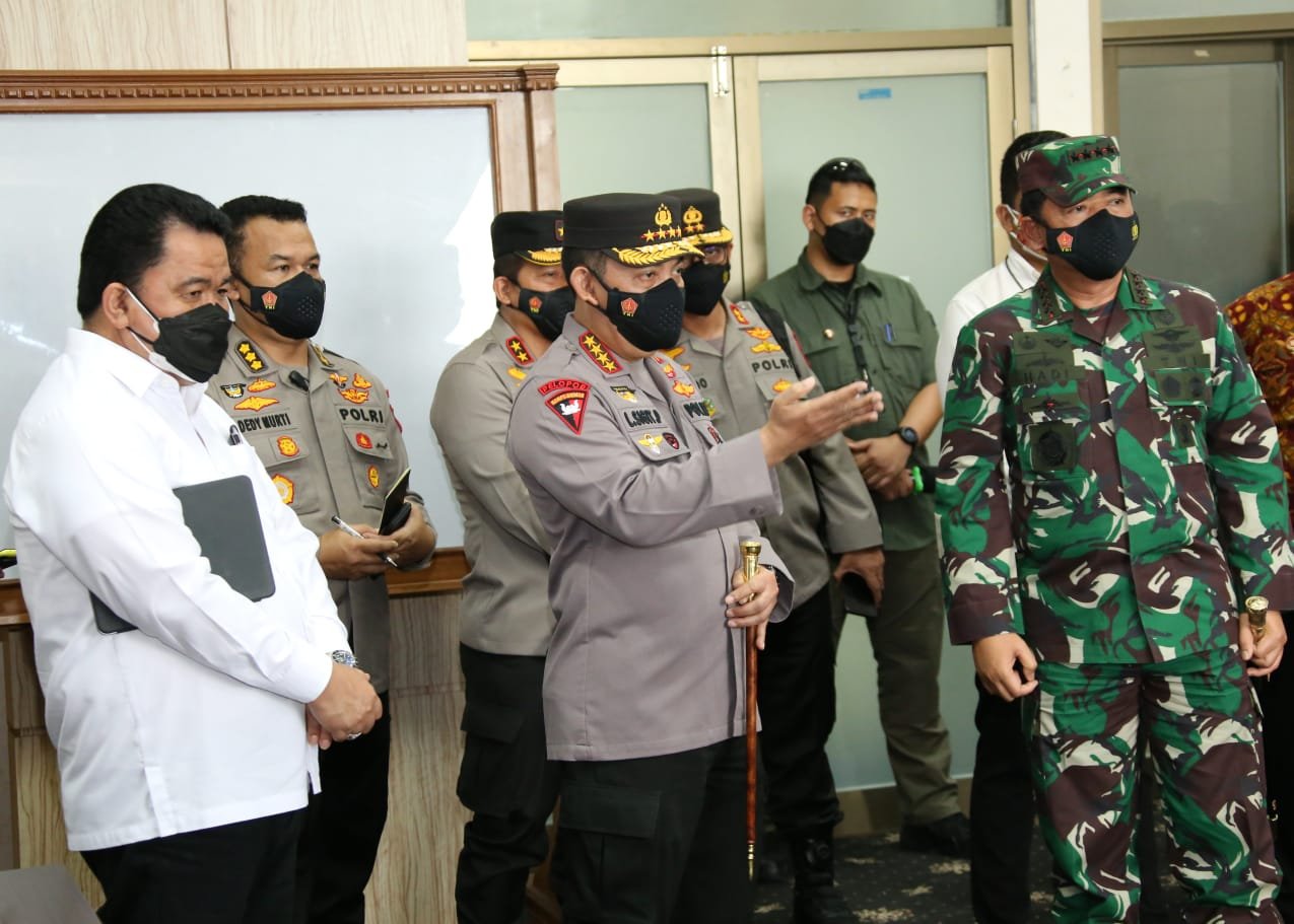 Jakarta – Panglima TNI Marsekal Hadi Tjahjanto dan Kapolri Jenderal Listyo Sigit Prabowo memimpin rapat penanganan dan pengendalian Covid-19 bersama dengan Forkopimda Sumatera Barat (Sumbar), Jumat (13/8/2021).