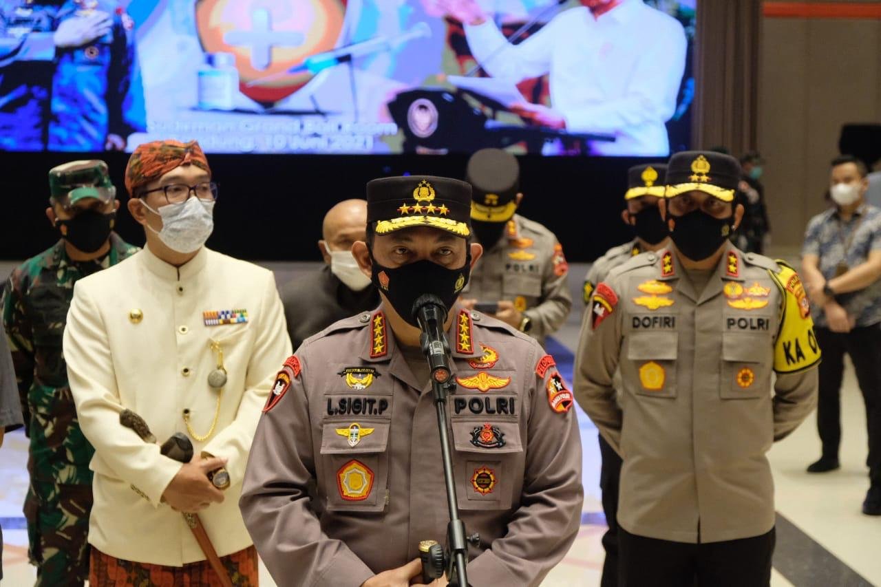 Sebagai Bhayangkara yang tangguh, Polri kata Sigit juga harus melakukan upaya terbaik dengan mengerahkan seluruh sumber daya yang ada dalam rangka membantu penanganan Pandemi Covid-19 melalui pendisiplinan protokol kesehatan 5M, penguatan upaya 3T, penjagaan dan penyekatan, operasi yustisi dan membantu akselerasi program vaksinasi Nasional melalui gerai vaksinasi presisi dan vaksinasi massal. “Besok kita akan memasuki masa PPKM Darurat dan Operasi Aman Nusa II Penanganan Covid-19 Lanjutan di Jawa dan Bali.