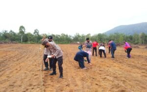 Bintan, Kepri – Guna menjadi Desa kampung tangguh ketahanan pangan, masyarakat Desa Sri Bintan melakukan penanaman benih jagung di Kebun Desa Kampung Poyotomo Desa Sri Bintan.
