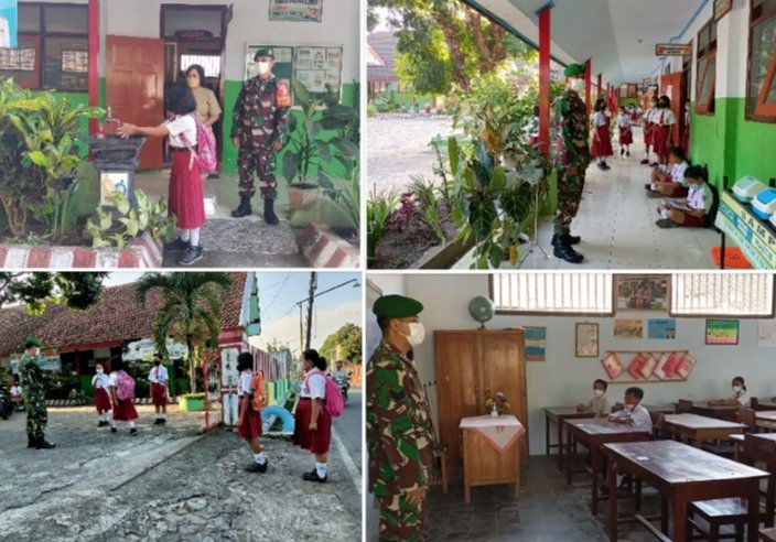 Blitar – Dalam rangka pelaksanaan kegiatan Pembelajaran Tatap Muka (PTM) secara langsung di sekolah- sekolah, yang berada di wilayah Teritorial Kodim 0808/Blitar, dan demi memberikan rasa aman, Babinsa Koramil Tipe B 0808/16 Talun Kodim 0808 Blitar, Serka I Nyoman Padmawinata secara rutin melaksanakan monitoring kegiatan PTM di sekolah yang berada di wilayah binaan.