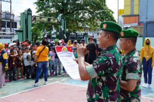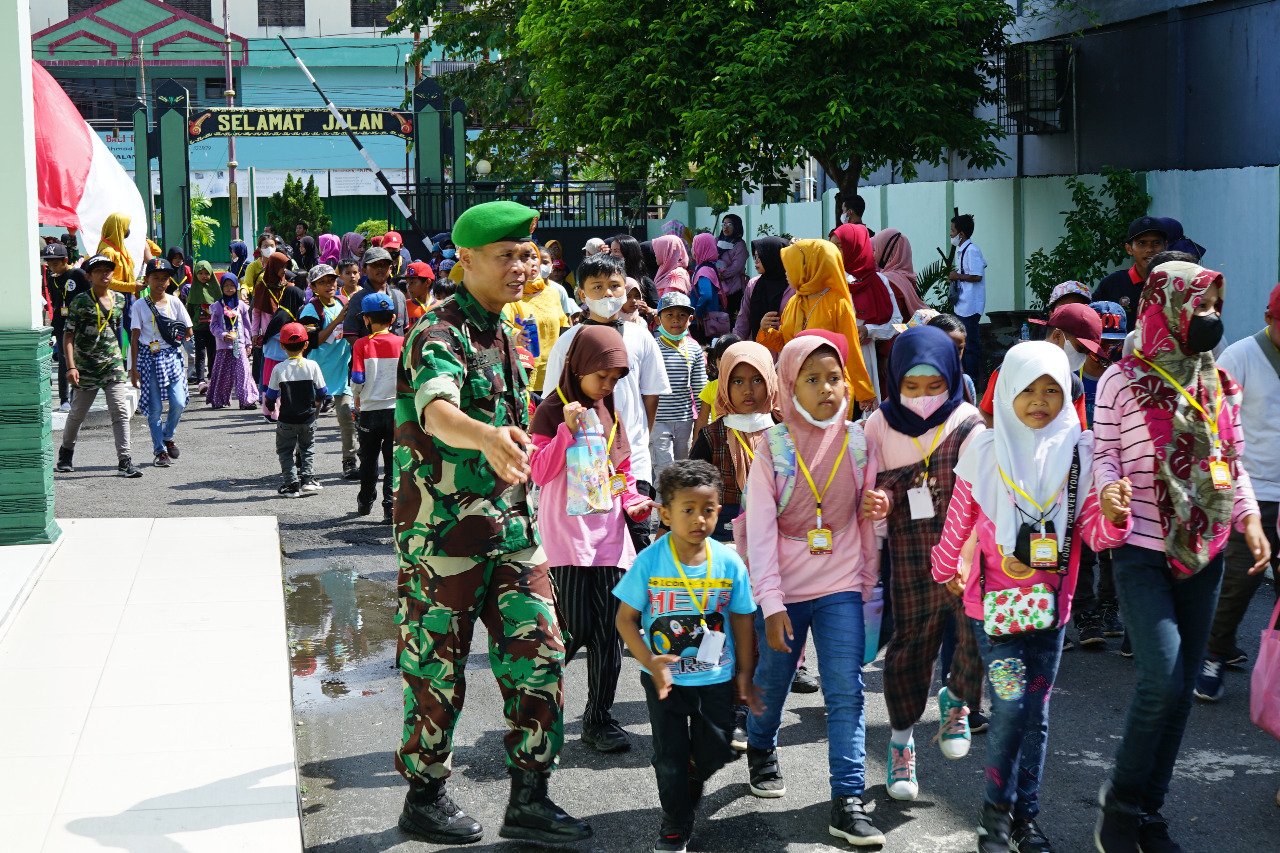 Palangka Raya – Guna untuk mengenalkan profesi TNI pada anak Kodim 1016/Palangka Raya menerima kunjungan Field Trip Kemah Pelangi Borneo. Acara yang diikuti oleh anak pelajar Taman Kanak-Kanak (TK) hingga Sekolah Dasar (SD) ini berlangsung di Makodim 1016/Plk, Jalan Ahmad Yani No. 80 Kelurahan Pahandut, Kota Palangka Raya, Senin (19/9/2022).