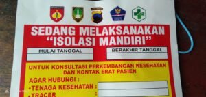 Sebagai tanda bahwa ada yang sedang melaksanakan isoman kami memberi tanda stikers sebagai tanda tempat atau rumah dalam Pemantauan dan edukasi protokol kesehatan kepada warga yang terkonfirmasi positif Covid-19 yang sedang melakukan isoman, pungkas Babinsa.