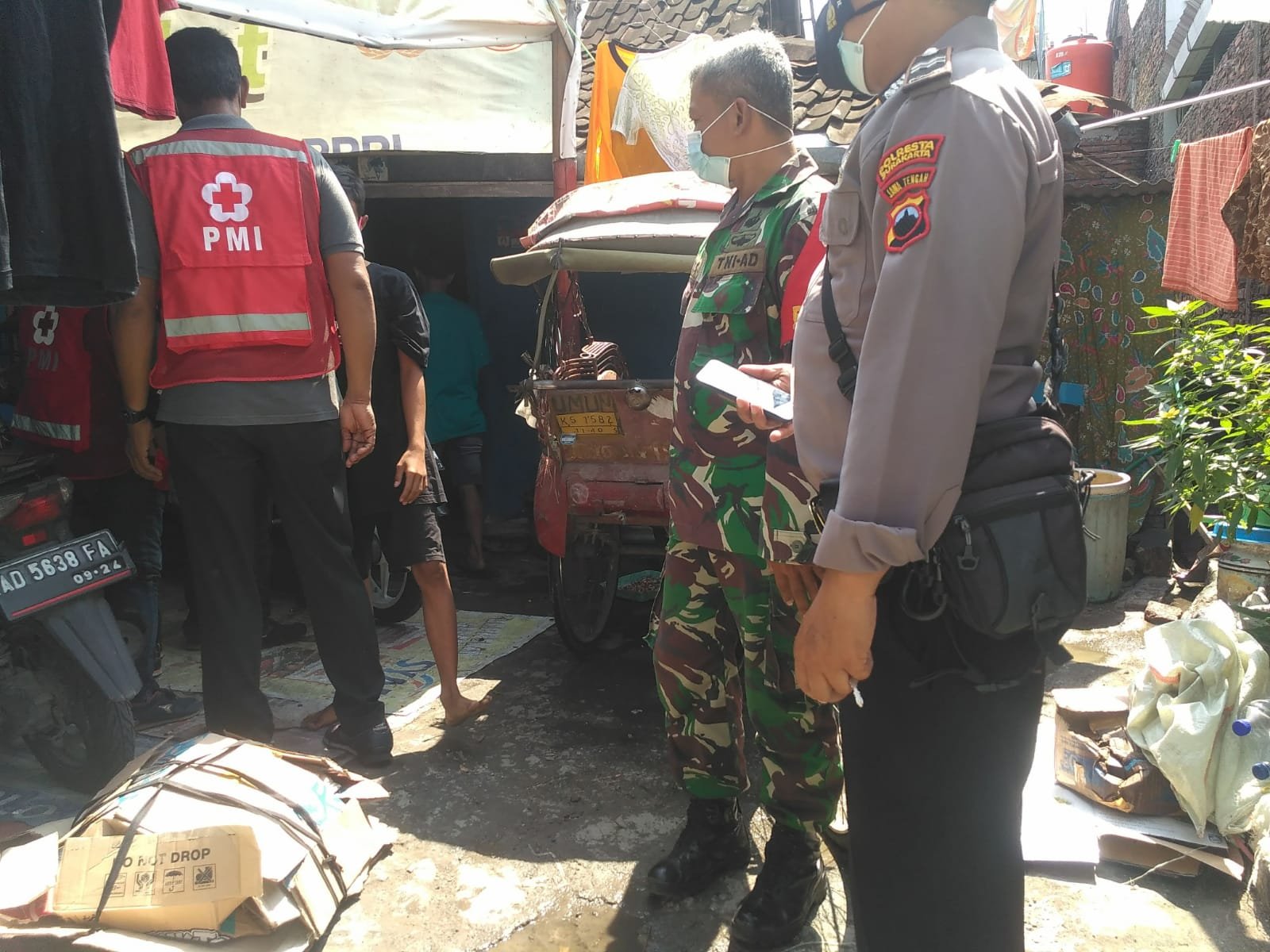 Surakarta – Babinsa kelurahan serengan koramil 03/serengan Kodim 0735 Surakarta Serka Aris setyo utomo beserta Bhabinkamtibmas Aiptu Puji mendampingi anggota sibat kelurahan dalam memantau perkembangan warga kelurahan yang melaksanakan isoman, 06/02/22).