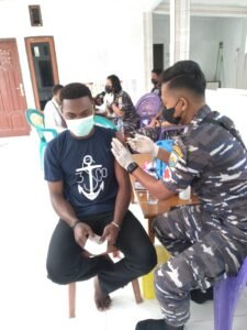 CAHAYANEWSKEPRI.COM – Dalam pelaksanaanya kali ini, Dinas Kesehatan Koarmada III dengan 8 (Delapan) tenaga vaksinator melaksanakan Serbuan Vaksin secara mandiri setiap hari, di Kelurahan Mayamuk Kabupaten Sorong Papua Barat, Adapun vaksin yang diberikan adalah Sinovac.