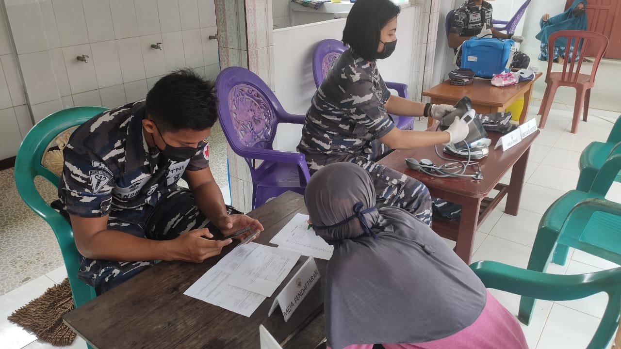 Para calon penerima vaksin sebelumnya melaksanakan Skrining atau mendapatkan pemeriksaan fisik terlebih dahulu , adapun pemerikasaan yang umumnya dilakukan adalah pengecekan suhu tubuh dan tekanan darah, serta menjawab pertanyaan-pertanyaan terkait informasi status kesehatan calon penerima vaksin oleh tenaga kesehatan dari Dinas Kesehatan Koarmada III.