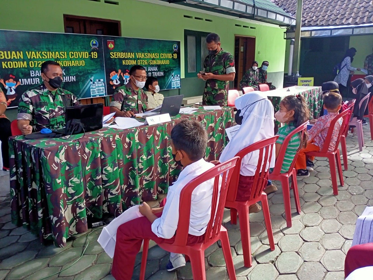 Dalam kegiatan ini Kodim 0726/Sukoharjo mengerahkan tenaga medis/vaksinator dari anggota Klinik Pratama Kartika 26 Kodim Sukoharjo, dengan target sasaran kepada 200 anak-anak KBT Kodim Sukoharjo dan anak-anak masyarakat sekitar Makodim 0726/Sukoharjo.