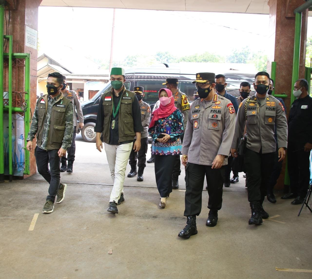 Jakarta – Kapolri Jenderal Listyo Sigit Prabowo meninjau kegiatan kolaborasi vaksinasi massal antara Polri dengan PB Himpunan Mahasiswa Islam (HMI) di SMA Negeri 38 dan PB SEMMI (Serikat Mahasiswa Muslimin Indonesia) di Universitas Indraprasta, Jakarta, Kamis (15/7/2021).