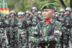 Kab. Bandung, Jabar – Komandan Resimen Induk Daerah Militer (Danrindam) III/Slw Kolonel Inf Lukman Hakim mewakili Pangdam III/Slw Mayjen TNI Kunto Arief Wibowo pimpin Upacara Pembukaan Pendidikan Pertama Bintara TNI AD 2022 yang dilaksanakan di lapangan Patriot Secaba Rindam III/Slw Jl. Arcamanik, Sindanglaya, Kecamatan Cimenyan, Kabupaten Bandung, Jum’at (23/09/2022).