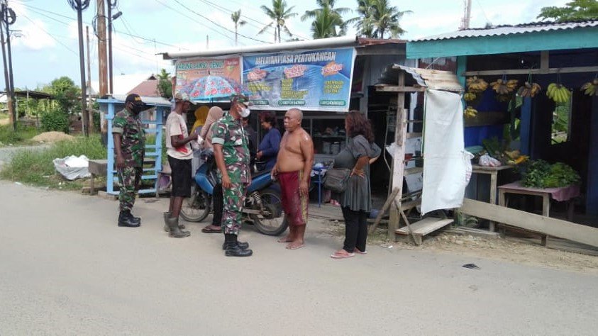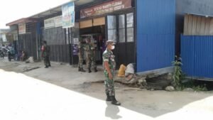 Sorong, Papua Barat – Anjangsana ke daerah binaan, Babinsa Koramil 1802-01/Sorong Kota Serma Purwantoro beserta 9 anggota melaksanakan Komunikasi Sosial (Komsos) di Komplek Pasar Bersama RT.01 RW.02 Kelurahan Malabutor, Distrik Sorong Manoi, Kota Sorong. Senin (07/2/22).