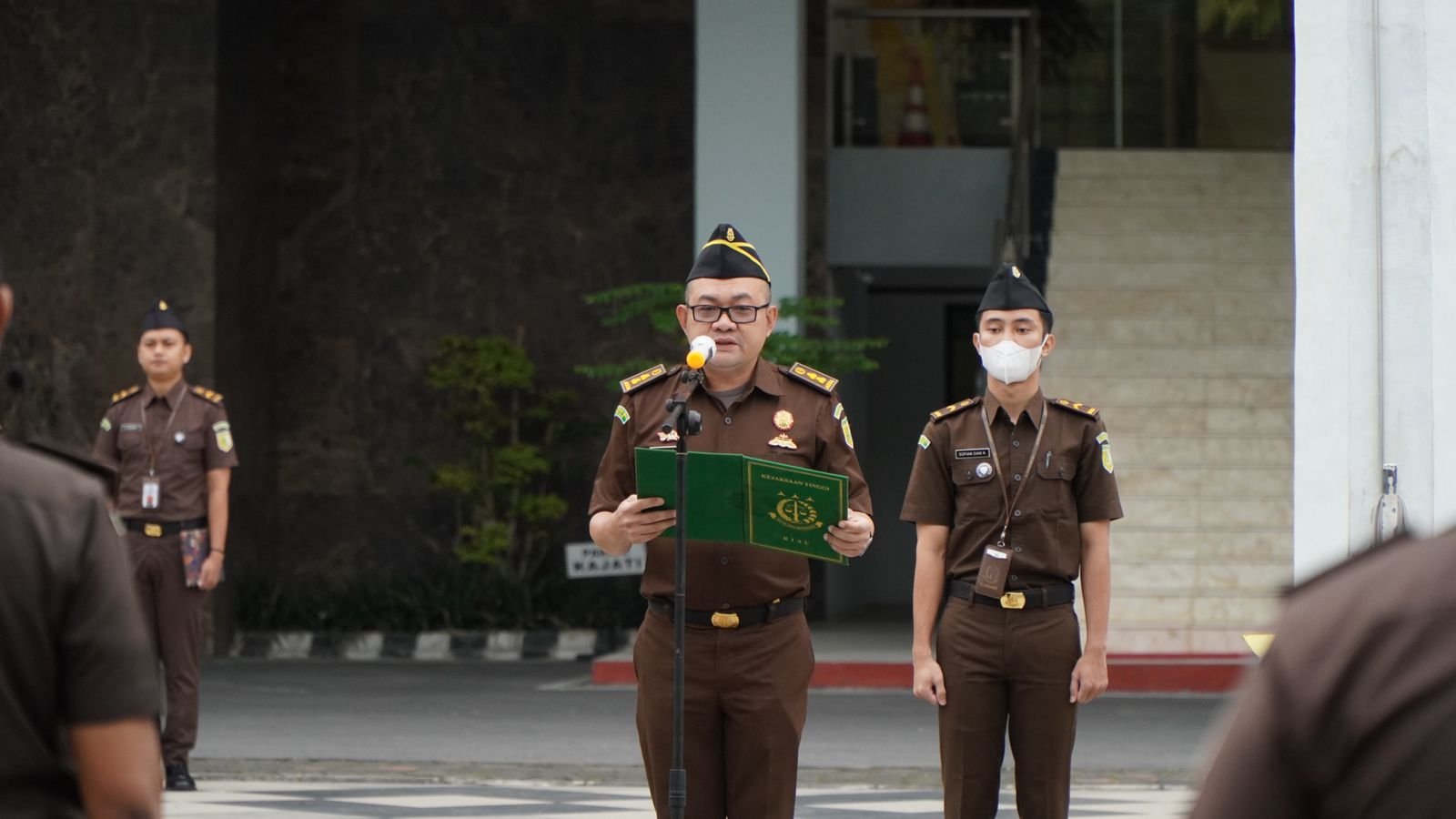 Pekanbaru – Bahwa pada hari Senin tanggal 20 Maret 2023 sekira pukul 07.30 Wib bertempat di Halaman Kantor Kejaksaan Tinggi Riau, Koordinator bidang Intelijen Kejaksaan Tinggi Riau Agus Taufikurrahman, SH., MH selaku Penerima Apel Kerja Pagi yang diikuti oleh Para Asisten, Koordinator dan Jaksa Fungsional beserta seluruh pegawai Kejaksaan Tinggi Riau.