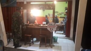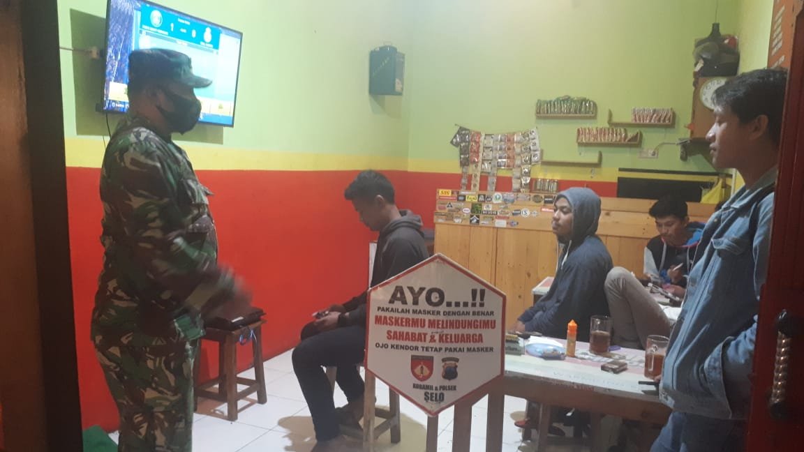 Boyolali – Untuk mengingatkan dan mendisiplinkan warga masyarakat dalam penerapan protokol kesehatan, Koramil 07/Selo Kodim 0724/ Boyolali yang dipimpin Batud Pelda Giyanto bersama 3 orang Babinsa menggelar operasi yustisi di tempat kerumunan dan masyarakat pengunjung tempat makan sekitar Simpang PB Selo Dukuh Ngaglik RT 01 RW 07 Desa Samiran Kecamatan Selo Kabupaten Boyolali, Minggu malam (09/01/2022).