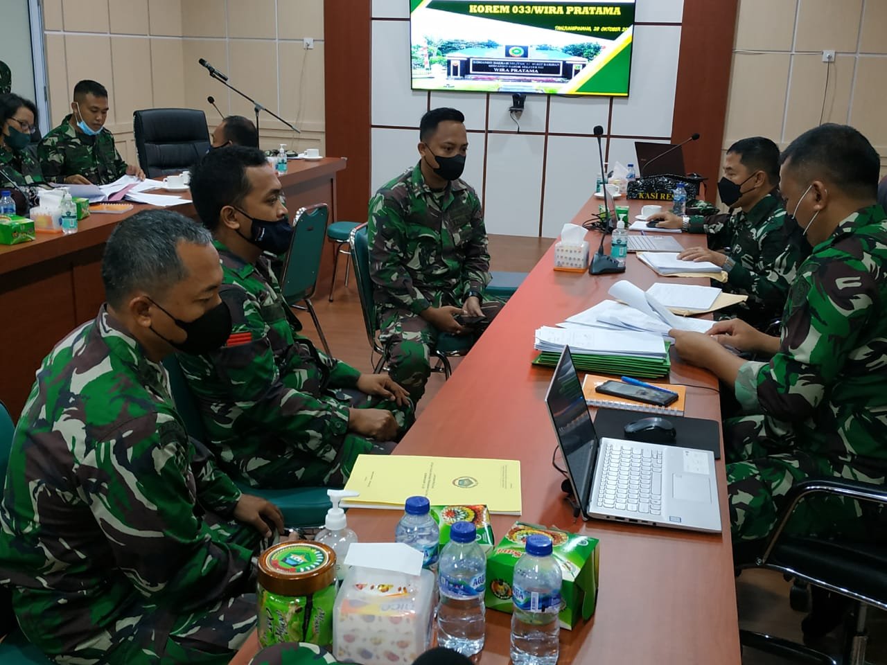 Tanjungpinang – Komandan Korem (Danrem) 033/Wira Pratama (WP) Brigjen TNI Jimmy Ramoz Manalu, S.Hub.,Int., yang di wakili Kepala Staf Korem (Kasrem/033) Kolonel Inf Enoh Solehudin menerima kunjungan kerja Tim Wasrik Current Audit dari Inspektorat Jenderal (Itjen) TNI yang dipimpin oleh Laksamana Agus Priyatna,S.T.,M.M.,C.FrA., beserta tujuh orang anggota lainnya bertempat di ruang data Markas Korem (Makorem) 033/WP Jln. Sungai Timun, KM. 14 Tanjung pinang, Kamis (28/10/2021).
