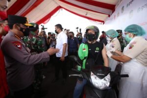 Kemudian Saat tiba di Hanggar Intergarasi Lanud Raden Sajad Kepulauan Riau, Kapolri langsung meninjau pelaksanaan vaksinasi mulai dari pendaftaran hingga observasi.