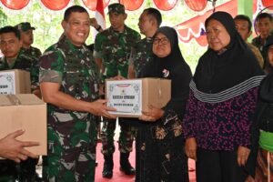 Dalam Kunjungan Kerja tersebut juga dilaksanakan Pemberian sembako oleh Danpusterad Letjen TNI Teguh Muji Angkasa, SE, MM, Danrem 074/Wrt dan Forkopimda kepada perwakilan 8 orang Lansia.