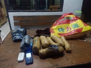 “Dari hasil Patroli Gabungan ditemukan berupa kantong berisi Ganja kering yang di kemas 7 buah dengan berat 1,5 kg, Handphone Samsung 1 buah, Handphone Bellphone 1 buah, Tas Noken 2 buah dan Topi 1 buah, Barang bukti tersebut diamankan Pos Kotis dan diserahkan ke Pos polisi perbatasan (Skouw) yang di terima oleh kepala Pos polisi Iptu Kasrun,” kata Dansatgas.