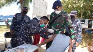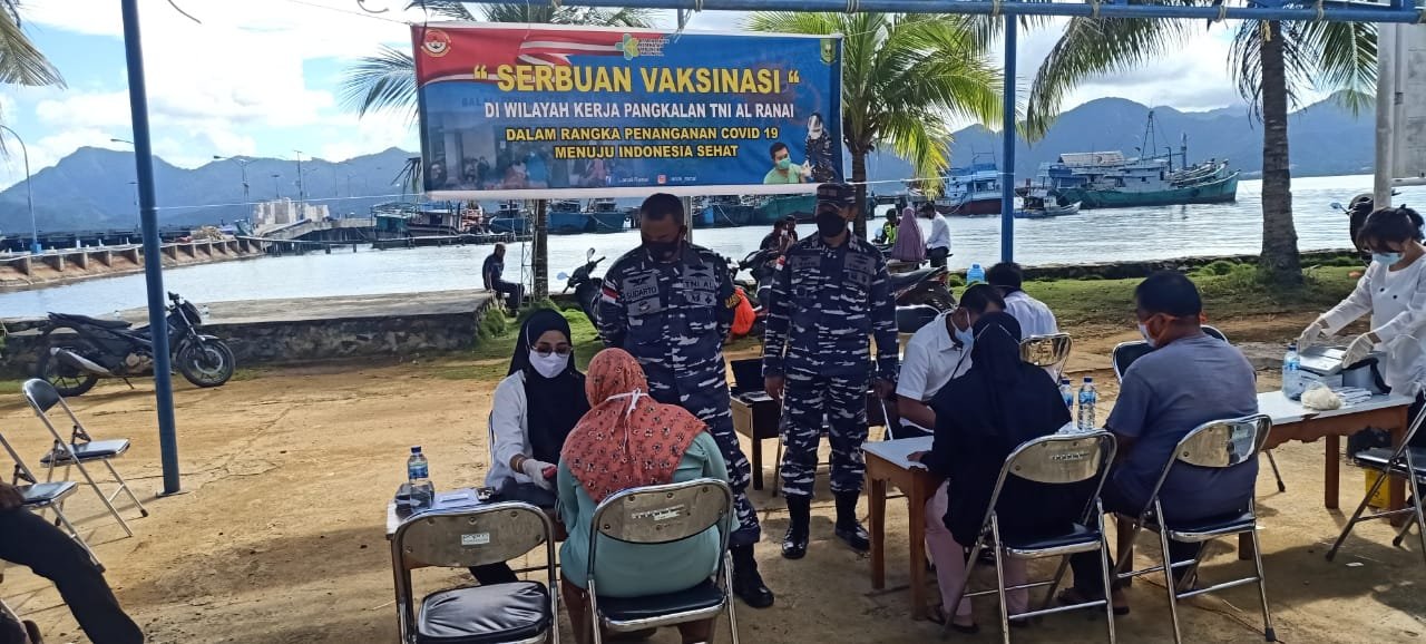 Natuna – Pangkalan TNIAngkatan Laut Ranai (Lanal Ranai) sedang gencar-gencarnya menggelar kegiatan Serbuan Vaksin Covid-19 Untuk Masyarakat Maritim sesuai instruksi Kepala Staf Angkatan Laut Laksamana TNI Yudo Margono, S.E., M.M., untuk mensukseskan Program Vaksinasi Nasional 1 juta orang perhari.