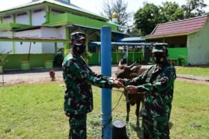 Tanjung pinang – Wakil Komandan Pangkalan Utama TNI AngkatanLaut IV (Wadanlantamal IV) Kolonel Marinir Andi Rahmat M, mewakili Komandan Lantamal (Danlantamal) IV Laksamana Pertama TNI Indarto Budiarto, S.E., M.Han., menyaksikan penyembelihan 14 ekor hewan qurban yang berlangsung di samping halaman Masjid Al Barkah Komplek TNI Angkatan Laut Jl. Imam Bonjol Tanjung pinang Kepulauan Riau, Selasa pagi (20/7/2021).