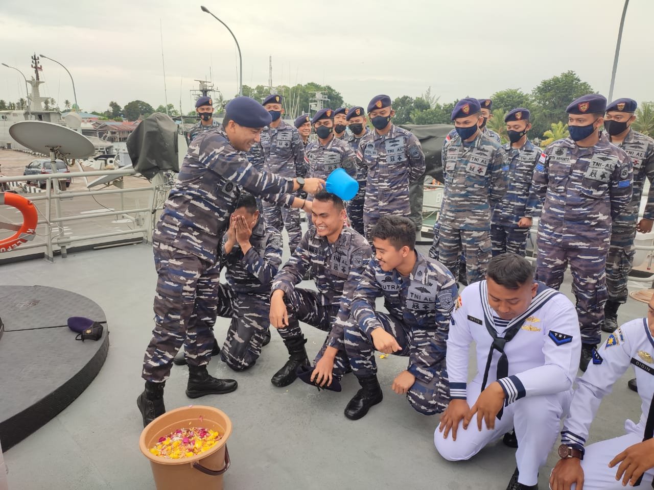Usai upacara dilaksanakan tradisi siraman kepada Prajurit yang naik pangkat diawali oleh Komandan KRI Lepu-861 diikuti oleh segenap Prajurit KRI Lepu-861.