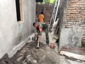 Surakarta – Wujud nyata kepedulian TNI -AD kepada warga masyarakat yang tidak mampu, Babinsa Kelurahan Sumber Koramil 02/Banjarsari Kodim 0735/Surakarta Serka Danang dan Sertu Yusuf bersama warga membantu pelaksanaan rehab rumah warga RT 02 RW 12 Kelyrahan Sumber Kecamatan Banjarsari, Rabu (22/03/2023)