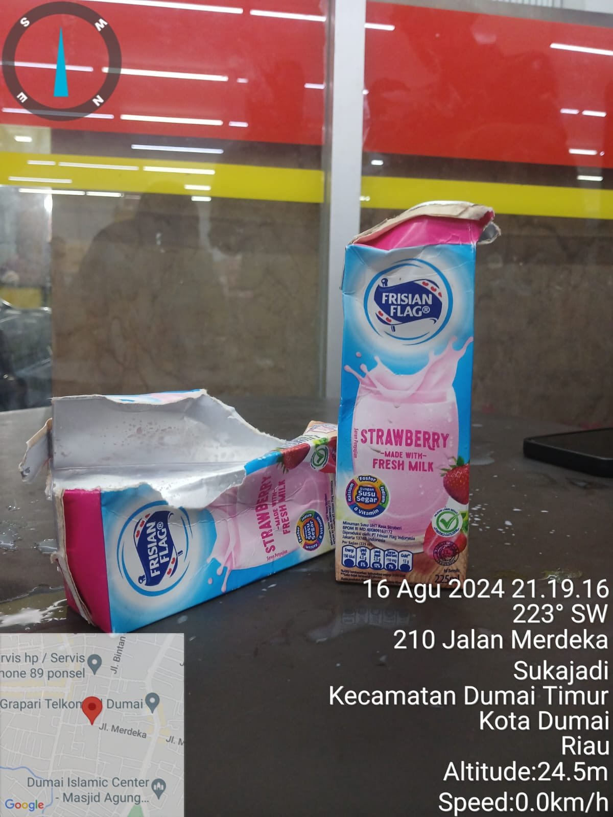 CAHAYANEWSKEPRI.COM – Menurut keterangan konsumen “Pada saat Ia membeli 1 (satu) kemasan susu rasa strawberry bermerek Frisian Flag tidak dikasi struk bukti pembayaran oleh salah seorang karyawan dan atau kasir Supermarket/Alfamart yang berlokasi di jalan Merdeka Sukajadi, Kecamatan Dumai Timur, Kota Dumai, Provinsi Riau.