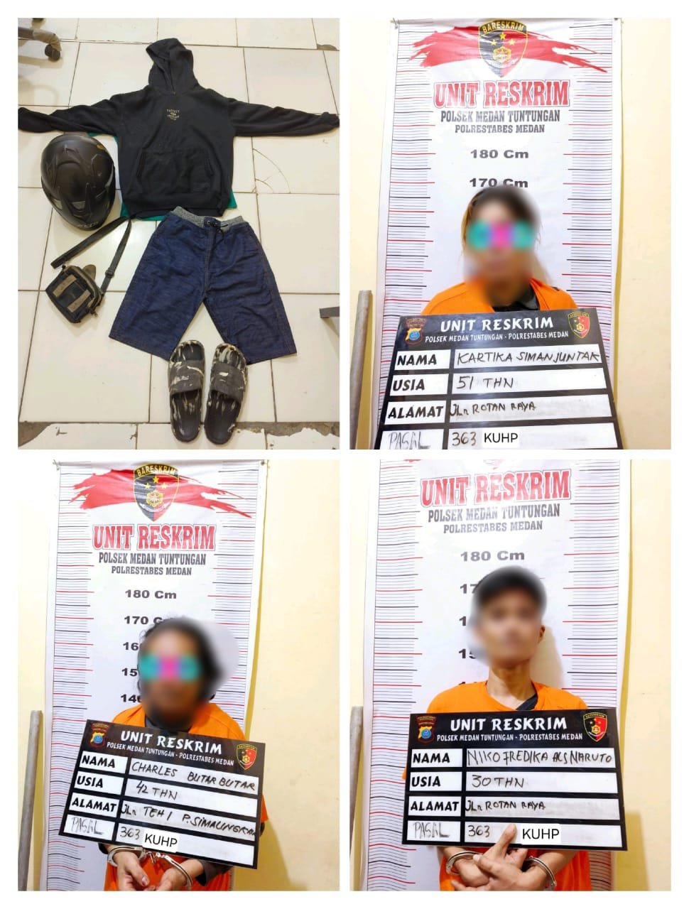 Saat ini seluruhnya tersangka sudah kami amankan untuk pemeriksaan lebih lanjut, barang bukti yang kami amankan satu unit sepeda motor beat,m satu buah helm, satu buah tas sandang kecil, satu potong celana pendek jenis jeans, satu potong baju switer warna hitam lengan panjang dan satu unit hp androit merek realme warna biru,” ungkap Kanit Reskrim Polsek Medan Tuntungan Ipda Pol Syawal Sitepu pada Selasa 3 September 2024 sore.