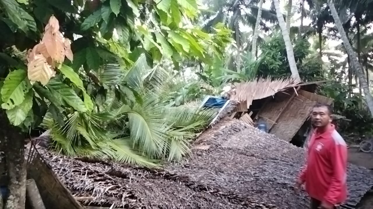 Penyebab tumbang nya pohon kelapa tersebut diduga akibat akibat curah hujan deras yang sering terjadi mengakibatkan tanah amblas sehingga pohon kelapa tumbang dan kebetulan keberadaannya tidak jauh dari rumah Safi’i yang dibangun dari batu dan kayu.