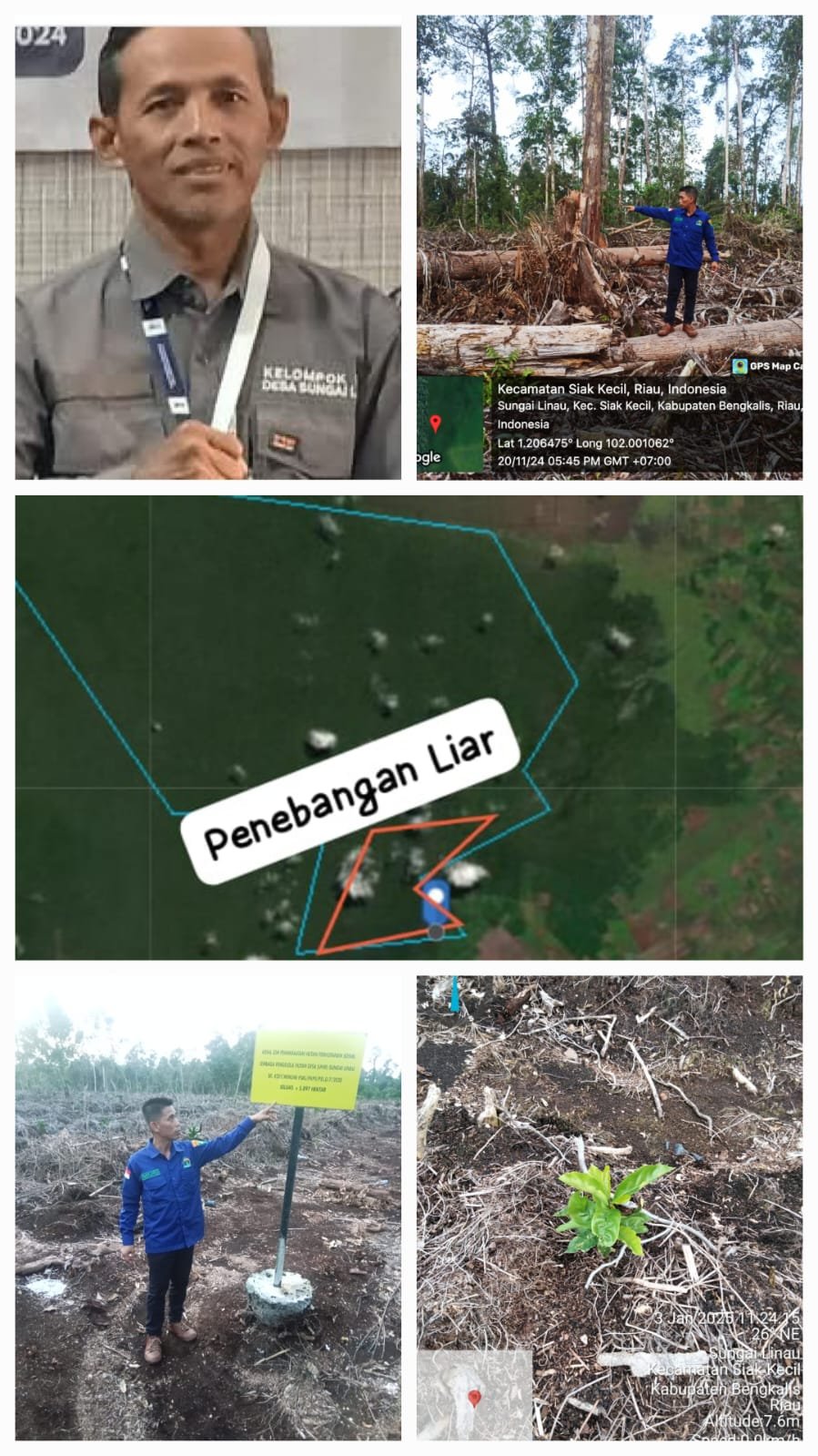 Dengan ucapan Nur Kholig yang sombong itu, langsung ketua DPW MAKALAH RIAU Taufik Koto bersama tim langsung cek lahan pengelola hutan Desa Sungai Linau ternyata lahan LPHD sungai linau kurang lebih dua ratus lima puluh hektar yang sudah terjadi pembalakan hutan (Ilegal Logging) bukan itu aja adalagi penanaman bibit kopi yang kita lihat tidak sesuai dengan bibit dan jumlah yang di berikan oleh KPH Bengkalis Pulau.